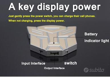 Power bank (batteria ricaricabile) esterna per tutti i tipi di telefoni cellulari con ricarica standard da 5V e 6000 mAh.