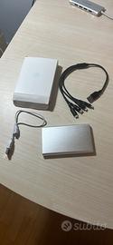 Power Bank con ricaricatore bianco + prese multiple per tutti i cellulari