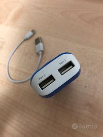 Caricabatteria/ power bank portatile con cavetto. Colore azzurro. 2 entrate usb. Marca Cellularline. Usato. Buone condizioni