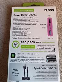 Power Bank portatile da 10.000 mAh di colore rosa