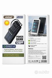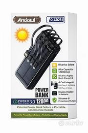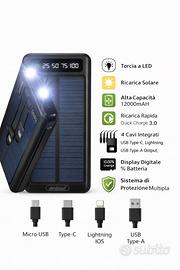 Power Bank Solare 12000mAh Con Torcia Led E Cavi
