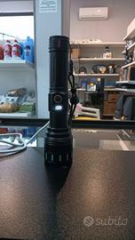 Torcia a LED ricaricabile tramite USB, super luminosa con funzione Power Bank potente torcia a fuoco regolabile per uso domestico