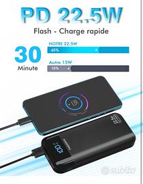 AIDASHU Power Bank 27000 mAh 22,5 W batteria esterna per cellulare PD20 W ricarica rapida USB C con display a LED, 3 uscite e 2 ingressi, caricatore portatile per smartphone