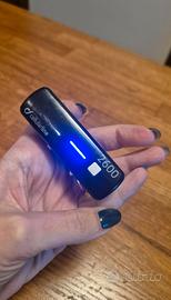 Powerbank Cellularline per caricare lo smartphone o altri dispositivi. Da 2600 mAh - 9,62 Wh, con uscita usb e micro usb. Basta collegarla al dispositivo con un cavetto per ricaricare il dispositivo. Il cavo non è incluso. Ha un pulsante che se premuto consente di verificare il livello di carica residua (linea azzurra in foto). Misura circa 7x2x3 cm. Dettagli in foto. Ha diversi graffi ma funziona perfettamente.