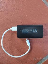 Caricatore portatile per cellulare con torcia. Presa di ricarica USB-B, cavo intercambiabile.