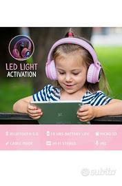 PowerLocus Cuffie Bluetooth per Bambini, Cuffie Over-Ear Senza-Fili per Bambini, Limitatore audio a 85 dB, con LED, Pieghevole, Con Microfono, Micro SD, Sacchetto da Trasporto per Viaggio/Telefono/PC. Connessione Bluetooth Wireless 5.0 con un click – Lasciali in piena libertà! Le cuffie wireless per bambini ti garantiscono una connessione stabile senza distorsioni fino a ben 15 metri di distanza. Usa le cuffie bluetooth Buddy Over-Ear con qualsiasi dispositivo dotato di Bluetooth connettore Jack – Smartphone, Tablet, Laptop, Mp3, PC, TV. Limitatore audio a 85 dB – Le Cuffie musica sono sicure per le loro orecchie delicate. Non importa quanto a lungo guarderanno film o ascolteranno musica, il limitatore di volume preverrà qualsiasi danno all’udito. Le auricolari wireless bluetooth ti daranno un suono HD cristallino con bassi profondi. Il microfono integrato abilita a chiamate chiare sia in modalità wireless che cablata. Modalità wireless, via cavo, e Micro-SD – Dai ai tuoi figli la libertà di godersi un’ampia gamma di modalità per tutti i dispositivi con le nostre cuffie sovraurali wireless specificatamente progettate. La batteria ad alta capacità ha un’autonomia di oltre nove ore. Più che a sufficienza per le giornate di relax, o i viaggi in auto. Inoltre, grazie alla modalità via cavo, potrai goderti la tua musica ed i tuoi contenuti all’infinito. Indicatore LED, design pieghevole e regolabile – Gli indicatori LED sulle cuffie audio bambini bluetooth possono essere spente ed accese in qualsiasi momento a seconda delle esigenze. Le imbottiture in schiuma proteica ultra-morbida rivestite in finta pelle garantiranno ai tuoi bambini un comfort duraturo anche dopo ore di utilizzo. Robusto design sovraurale adatto a maschietti e femminucce, piccoli e grandi, sempre alla perfezione. Portatili, adatti a qualsiasi zaino (include una custodia) Eccellente Servizio Clienti & garanzia di 24 mesi – Le cuffie per bambini dureranno più a lungo di qualsiasi altro paio di cuffie. N