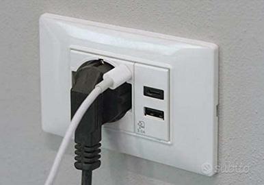 Presa bipasso e schuko 4Box , tipo P40 con USB 3.0A. In soli 2 moduli la nuova presa di 4Box garantisce contemporaneità d'uso e velocità di ricarica, colore bianco. Compatibile con la serie Vimar Plana.