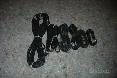Causa inutilizzo vendo in unico blocco 15 prolunghe per collegamento, telefoni, fax, modem, costituite da cavo telefonico flessibile nero, grigio e bianco, in varie pezzature complete di Plug terminale di 4 / 6 / 8 poli e 3 Adattatori, come da foto allegate .