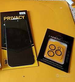 Proteggi il tuo iPhone 16 Pro. Pellicola privacy in vetro temperato 4 strati + Protezione per fotocamere + Custodia in silicone trasparente Magnetica