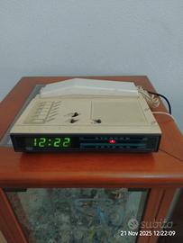 Radio‑sveglia vintage con telefono integrato, completamente funzionante: display digitale, bande AM/FM, funzioni telefoniche e comandi originali dell’epoca.