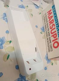 Vendo rarissima Seconda Base Marsupio (Art. 020092), l'accessorio cult per chi possedeva i primi "microtelefoni" portatili. Questo oggetto non era solo un caricabatterie, ma un vero e proprio simbolo di status dell'epoca, pensato per avere il telefono sempre carico e a portata di mano in ogni stanza (cucina, camera, salotto). Caratteristiche del prodotto: Condizioni: Oggetto pari al nuovo (fondo di magazzino), completo di scatola originale con grafiche spettacolari tipiche del periodo. Design: Estetica minimalista bianca con LED rosso di ricarica. Versatilità: Può essere utilizzato sia come base da appoggio che installato a parete (grazie ai fori sul retro). Specifiche: Funziona con alimentatore a 220V (non incluso, ma standard per l'epoca). Made in Italy: Un pezzo di storia del design tecnologico italiano.