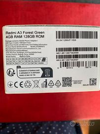 Vendo Redmi A3 colore Forest Green con 4GB di RAM e 128 GB DI ROM usato circa un mese in attesa del nuovo telefono. Perfettamente funzionante e non presenta difetti essendo stato tenuto bene. Vendo con caricatore e cavo tipo C, cover trasparente ma senza pellicola per lo schermo.