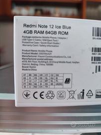 Redmi Note 12 dual SIM e con slot micro SD, NFC 4+64 GB in perfette condizioni con confezione originale e cavo per ricarica rapida, non presenta graffi o segni di usura.
