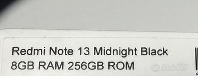 Redmi Note 13 Midnight Black 8 GB Ram 256 GB Rom 4G Senza nessun difetto , con custodia , caricabatteria e cavo . Solo ritiro a mano . Ancora in garanzia fino al 30 /7 /2027