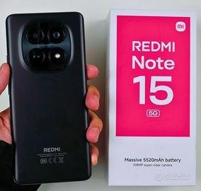 Vendo Smartphone Xiaomi Redmi Note 15 Nero Black Nuovo Mai Utilizzato. Chi acquista questo Smartphone è come se lo comprasse da Negozio. Il Telefono è N U O V O. Perfette Condizioni Estetiche. Mai messo in funzione. Acquistato e lasciato dentro la scatola. Memoria Interna 256gb espandibile tramite micro SD. Doppia Sim, Processore 8 Core 2.1 GHZ Android 16. Display 6.77 pollici con risoluzione da 2392x1080 pixel. Fotocamera Posteriore da ben 50 megapixel risoluzione 8165x6124 pixel permette di creare foto perfette in altissima risoluzione. Video in 4K risoluzione di 3840x2160 pixel spessore di 8.3mm L'Audio in Vivavoce emette un suono Molto Potente. Batteria interna da 5800 mAh Durata un'intera giornata Viene Venduto con Scatola, Senza Caricabatterie. SOLO TELEFONO e SCATOLA. Vendo per passaggio a modello superiore. Prezzo NON TRATTABILE. Non Accetto Scambi.