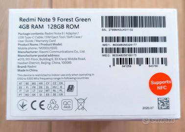 Redmi Note 9 colore Forest Green con 4GB di RAM e 128 GB di rom con scatola, libretto di istruzioni e caricatore tutto originale + cover con cordino. Usato ma in ottime condizioni. Da vedere!