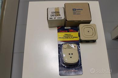 Vendo ricambi e materiale telefonico nuovo mai usato. Lista: presa tripolare telefonica originale Telecom, scatola da incasso presa telefonica Telecom, spina tripolare telecom, spina con adattatore plug tripolare Telecom, Filtro adsl tripolare Telecom, Filtro adsl Plug Telecom, Suoneria Trillo telefonica a spina regolabile Telecom, Suoneria elettronica regolabile Telecom, Disco combinatore Fatme-Italtel x telefono Bi/Grigio Sip, Commutatore telefonico a 2 uscite plug Telecom, Borchia Aethra Bus/S 2 Jack Sip. In più vendo anche capsule microfoniche e capsule riceventi per telefoni vintage, cordoni microfonici, cordoni borchia grigi. Ad ogni articolo vi dico il prezzo.