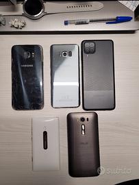 Vendo telefoni per pezzi di ricambio. - Schermo Samsung A21s 10 euro (schermo ORIGINALE e funzionante, schermo crepato, funzionalità non compromesse) - Samsung s8 5 euro (c è solo jack cuffie, sensori, tasti, carrellino SIM, frame e le fotocamere, non testati ma dovrebbero funzionare) - Samsung a12 25 euro (c è tutto tranne scheda madre e batteria, schermo testato, il display si accende, touch non testato.) - Nokia Lumia 800 7 euro (scheda madre e batteria sembrano non funzionare, tutto il resto, quindi schermo ed altri componenti, sono funzionanti) - Samsung S7 Edge 20 euro (funziona tutto, scheda madre borderline, per questo vendo come pezzi di ricambio, il telefono a volte non si carica, si deve aprire togliere la batteria e si riaccende, ricolleghi batteria, carichi e accendi e si accende, ma da acceso dopo un po' si riavvia da solo. lo fa con e senza batteria. se carichi da spento, dopo un po' si accende da solo.) - Asus Zenfone Z00ED 10 euro (schermo sembra integro, ma non dà cenni di vita) - Zte Nubia Neo 2 5 euro (solo frame) - SAMSUNG A3 2017 E HUAWEI P8 LITE VENDUTI Condizioni visibili in foto, vendita in lotto o singolarmente, il prezzo proposto è di 50 euro. I componenti non testati non è garantito che funzionano.