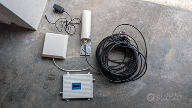 ripetitore di segnale telefonico, amplificatore di rete 4G estende la copertura di rete dove il segnale non è raggiungibile, baite, cantine, locali o qualunque posto dove il segnale è debole. installazione antenna all'esterno con circa 20m di cavo. per lunghezze maggiori bisogna aggiungere prolunga. usato per 1 settimana in montagna ancora con pellicola sul display