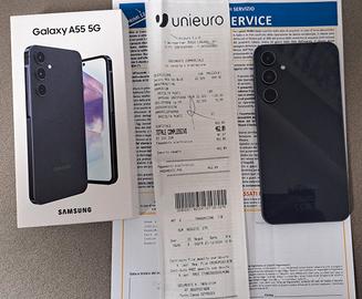 Causa passaggio ad altra tipologia di telefono, vendo Samsung A55 blu, 128gb acquistato il 27.12.2024 compresa estensione garanzia di altri 2 anni (vds scontrino in foto).
