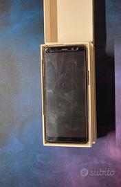 Vendo Samsung A8 2018 perfettamente funzionante ma con il vetro del Back rotto. il vetro davanti è integro e protetto da vetrino. Insieme c'è anche trasformatore originale samsung ma senza cavo. È dotato di Jack per le cuffie