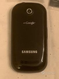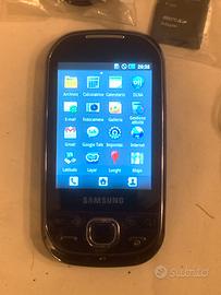 Cellulare Samsung sistema operativo android, completo di accessori come da foto (auricolari mai usati). Touch. Numeri grandi per il telefono, tastiera qwerty per la messaggistica. Contiene già una memoria sdcard da 1GB che potete sostituire con quello che volete.