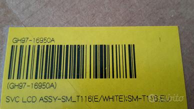 Vendo SAMSUNG DISPLAY LCD + TOUCH FULL SET GALAXY TAB 3 7.0" (SM-T116) color BIANCO, ricambio ORIGINALE SAMSUNG, NUOVO (fondo di magazzino).