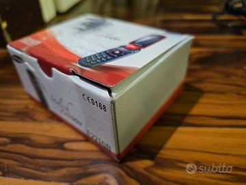 Telefono pieghevole Samsung E2210B rosso con inserti neri, perfettamente funzionante.