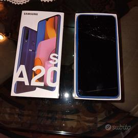 Samsung Galaxy A20 s con display lesionato da sostituire ma funzionante , senza difetti estetici, scatola originale, cavetto senza spina, batteria 100% .