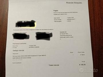 Vendesi Samsung Galaxy A26 5G 6GB/128GB Smartphone 6.7" Super AMOLED 50 MP 5000mAh 25W Android 15 Menta. Data acquisto 11/06/2025 (vedesi fattura allegata). Ancora decisamente in garanzia. Incluso di nr. 2 custodie come in foto. Il cellulare è praticamente nuovo. Lo vendo perché ho ricevuto un iPhone