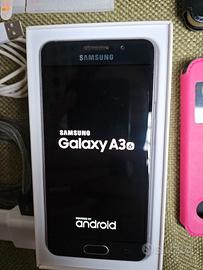 Vendo Samsung Galaxy A3 (2016) da 16GB, tenuto in ottime condizioni, sempre con custodia a libro e vetro protettivo. Viene consegnato ripulito e resettato (a richiesta posso inizializzarlo e rimuovere tutte le app e le funzioni inutili per velocizzarlo). Accessori inclusi: Due custodie a libro quasi nuove, una nera e una rosa. Due vetri protettivi nuovi. Memoria aggiuntiva della Samsung da 8GB (con adattatore per pc). Cavetto extra per ricarica rapida, in nylon ad alta resistenza. Cavetto originale. Cuffiette originali (nuove).