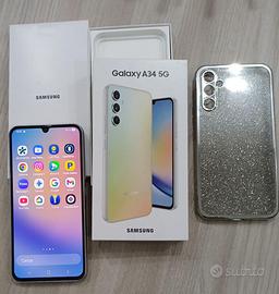 Samsung Galaxy A34 5G Silver 128gb - Modello SM-A346B/DSN -Colore Silver -Memoria 128Gb -Ram 6GB -Gps -Dual Sim 5G -ANDROID 15 -Display 6.6 -Fotocamera posteriore tripla 48+8+5 Mpx - anteriore 13 Mpx Video 4K -Batteria 5000 mAh Acquistato a Febbraio 2024 in ottimo stato e perfettamente funzionante sempre tenuto con cover di protezione e vetrino sul display con scatola e accessori originali. Solo se realmente interessati. GRAZIE