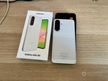 Vendo Samsung Galaxy a56 5G 128gb colore white acquistato circa un mese fa, in garanzia, ricevuta d'acquisto presente, no graffi o ammaccature.