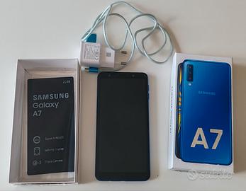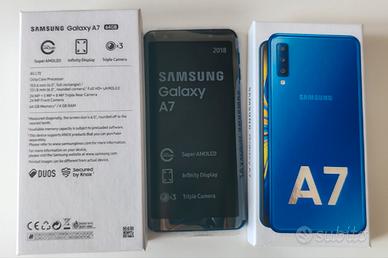 Smartphone Samsung galaxy A7 2018 BLU Dual Sim in ottime condizioni, proprietario unico, con caricabatteria compreso e custodia nera nuova.