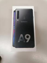 Vendo smartphone Samsung Galaxy A9, 6 GB di RAM, 128 GB di memoria, colore Black, con scatola originale, senza accessori, con pellicola salvaschermo, display originale, senza difetti e perfettamente funzionante.