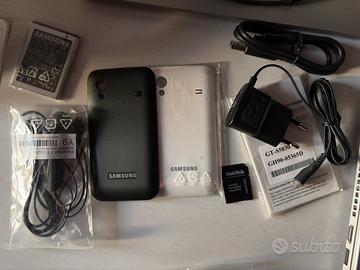 Vendesi esemplare di Samsung Galaxy ACE in condizioni da vetrina, con ancora applicate le pellicole protettive sullo schermo ed i profili laterali cromati; compreso di scatola originale e tutti i suoi accessori (batteria originale, caricatore, cavo USB, back cover zigrinata in colore grigio scuro, seconda back cover in colore bianco, manuale d’uso). Il cellulare è stato acquistato per collezionismo e non è mai stato utilizzato per telefonare o scaricare app (quindi, non è neppure mai stato associato ad alcun account Google); una vera e propria chicca, una reliquia preservata nel tempo sin dal 2012!