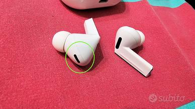 Segnalo per correttezza una microlesione su uno dei due auricolari, dovuta a pressione e cerchiata in foto, che non compromette assolutamente il funzionamento delle cuffie.