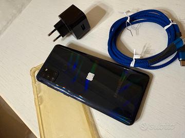 Samsung Galaxy da 6,5 pollici --- Dual SIM --- Samsung Galaxy A21s in colorazione blu con 32 GB di memoria interna e 3 GB di RAM, ideale per chiamate, social, foto e utilizzo quotidiano. Modello pratico e affidabile, con ampio schermo da 6,5" che garantisce una buona visualizzazione di contenuti, video e app. Il telefono è dotato di sblocco con riconoscimento viso e impronta digitale, oltre al supporto Dual SIM e alla possibilità di espandere la memoria tramite microSD, per avere più spazio per foto, video e file. Incluso con lo smartphone: - Cover - Pellicola protettiva - Cavo di ricarica - Spina di alimentazione - Spina / estrattore SIM Ottime condizioni --- Originale --- Prezzo: 100 € Venduto con formula — VISTO E PIACIUTO —