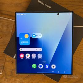 come da titolo vendo samsung galaxy fold 7 512gb blu acquistato il 13 luglio 2025 su amazon, garanzia 36 mesi. completo di scatola, accessori, ricevuta e cover Samsung originale, entrambi i display sono stati protetti con pellicole. non accetto permute o scambi!