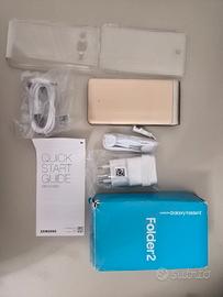 Smartphone samsung galaxy folder 2, con pellicola, cover trasparente, auricolari, spina e cavo. Ottime condizioni, funziona anche whatsapp e tutte le normali app