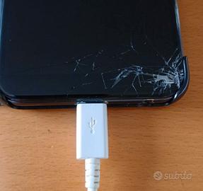 Vendo Samsung Galaxy J6 nero. Il telefono presenta un vetro rotto nella parte bassa destra. Perfettamente funzionante