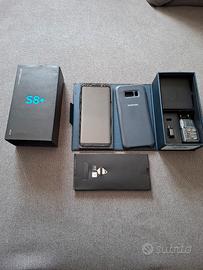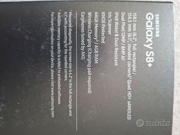 Salve,vendo telefono Samsung galaxy S8 plus,cover originale,cuffie e caricatore nuovi,doppio vetro(scheggiato),batteria ok,funzionante ancora in uso. no spedizione grazie