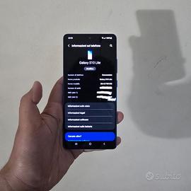 Vendo Samsung Galaxy S10 Lite per inutilizzo . Schermo e bordi sono in condizioni perfette . Il retro presenta alcuni graffi dovuti all’usura , ma il telefono è completamente funzionante . Con cavo di ricarica e cover trasparente . Specifiche: PROCESSORE: Snapdragon 855 (Octa‑core Kryo 485) GPU: Adreno 640 RAM: 8 GB + 8 GB RAM Plus MEMORIA: 128 GB , espandibile con microSD fino a 1 TB DISPLAY: 6.7" , 1080×2400 px , 393 ppi , Super AMOLED , Gorilla Glass 6 RETE: 2G/3G/4G LTE , Wi‑Fi a/b/g/n/ac , Bluetooth 5.0 , GPS FOTOCAMERA POSTERIORE: 48 MP (stabilizzazione ottica) , 12 MP , 5 MP , 5 MP , Video 4K 60fps , slow motion , HDR FOTOCAMERA FRONTALE: 32 MP , video Full HD 30fps USB: Type‑C 2.0 SENSORI: impronta digitale , accelerometro , prossimità , giroscopio , bussola , sblocco con viso BATTERIA: 4500 mAh con ricarica rapida SISTEMA: Android 13 con One UI 5.1