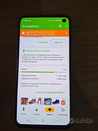 Vendo samsung galaxy s10e in buone condizioni con: - Cover + pellicola (già applicata) - Pellicola di riserva - Confezione originale - Caricatore e cavo dati Precisazioni da fare: La scocca posteriore, come da foto, è danneggiata (al tatto non si percepisce, se non nei punti in cui è più danneggiata). Il telefono ha diversi anni alle spalle infatti la salute della batteria è stimata al 72% / 73% (dati accubattery).