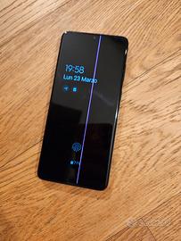 Vendo Samsung galaxy S20+ che presenta sullo schermo una riga di pixel danneggiati. Il telefono funziona perfettamente, anche il touch screen lungo la riga di pixel danneggiati. Il lato frontale ha il vetro integro senza crepe, il retro ha qualche crepa. Vendo come rotto a causa dei suoi problemi anche se funziona perfettamente. Dotato di scatola e due cover in regalo.