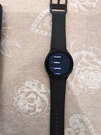 Smartwatch Galaxy Watch 4 Wear OS perfettamente funzionante, cinturino originale mai usato, solo un segno lungo la circonferenza causato dall'uso della cover rugged Spigen, che calzata lo rende come un G-Shock e nasconde questo segno. Dotazione originale completa di scatola, caricatore wireless e manualistica.