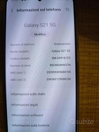 Vendo Samsung Galaxy S21 5G (modello SM-G991B/DS, Dual SIM) colore Phantom Gray, utilizzato per circa un anno e acquistato nel 2022.