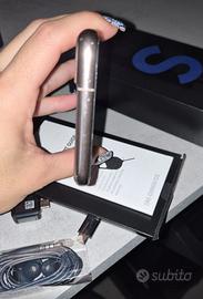 Samsung S21plus colore viola dettagli oro rosa 5G. Rom 128 GB ram 8GB. Confezione inclusa ed accessori completi come da foto. Completo di caricatore. Un tantino steccato sotto dove si carica. Acquistato ad euro 900! Consegna a mano. No spedizione