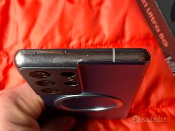 Smartphone Samsung Galaxy S21 Ultra 5G SM-G998B/DS con scatola originale e cavo usb-c Vetro rotto in basso a sinistra ma touchscreen perfettamente funzionante Batteria ancora discreta 256 Gb memoria interna 12 Gb RAM Pellicola protettiva display appena applicata Display 6,8” Amoled Fotocamere 108 Mp + 10 Mp + 10 Mp + 12 Mp Zoom ottico 10x