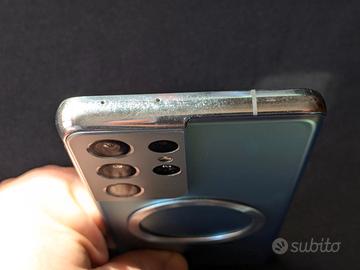 Smartphone Samsung Galaxy S21 Ultra 5G SM-G998B/DS con scatola originale e cavo usb-c Vetro rotto in basso a sinistra ma touchscreen perfettamente funzionante Pellicola protezione display cambiata da poco Batteria ancora discreta 256 Gb memoria interna 12 Gb RAM Pellicola protettiva display appena applicata Display 6,8” Amoled Fotocamere 108 Mp + 10 Mp + 10 Mp + 12 Mp Zoom ottico 10x